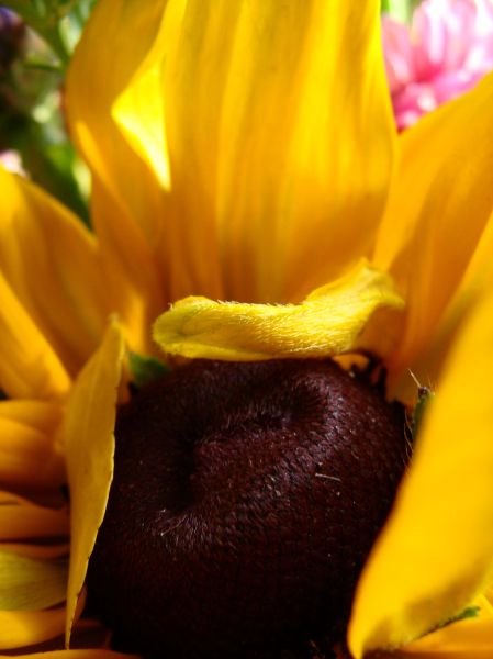 I have been having great difficulty photographing sunflowers. Somehow the image of the whole flower is never quite right. Finally I decided to stop worrying about the mythic image and enjoy the beauty of the abstract.