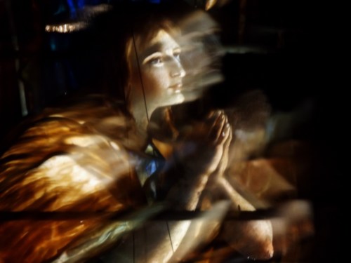 The robes of the largest angels, representing earth, air, fire and water, are made from drapery glass.