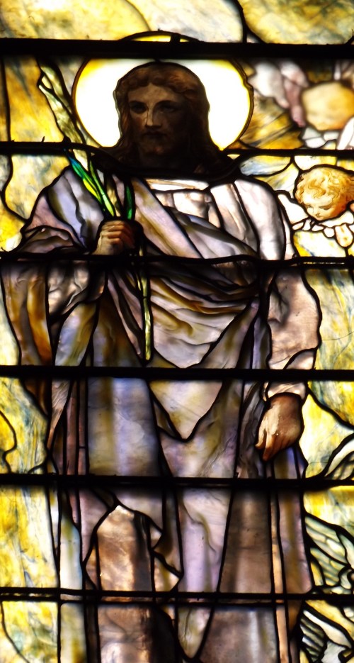 Detail from opalescent chancel window, Cummings Studios, 1954