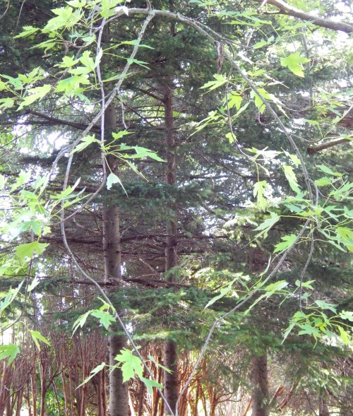 I expect it is the summer season’s lack of rain that produced this startling contrast of colors on the same branch.