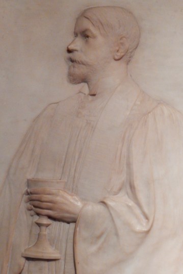 I’d seen the sculpture many times inside Trinity Church but not truly appreciated it. A man holding a cup, a cup-bearer, but the person depicted had no context for me. I knew nothing of his significance in the past or in the present. There were too many other visuals capturing my attention, like sunlight through stained glass windows. Only recently have I returned with greater respect to the relief of Elijah Winchester Donald, Rector of Trinity from 1892 until 1904.