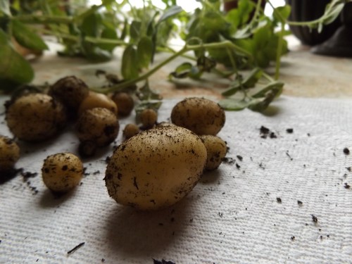 You can read the backstory on my indoor potato growing experiment here. Not exactly a bumper crop, but what fun!