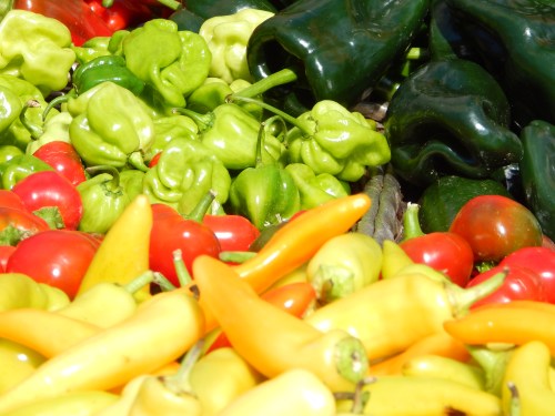 I wasn’t really thinking dinner. Luckily, Steve always is and so when he returned home, I simply showed him my colorful palette and he saw cooking ingredients. After a moment of thought, he nodded and said, “I can work with this.” He would add white garlic and red onions to the mix, but no images of these items do I have for this post because by then I had put my camera away.