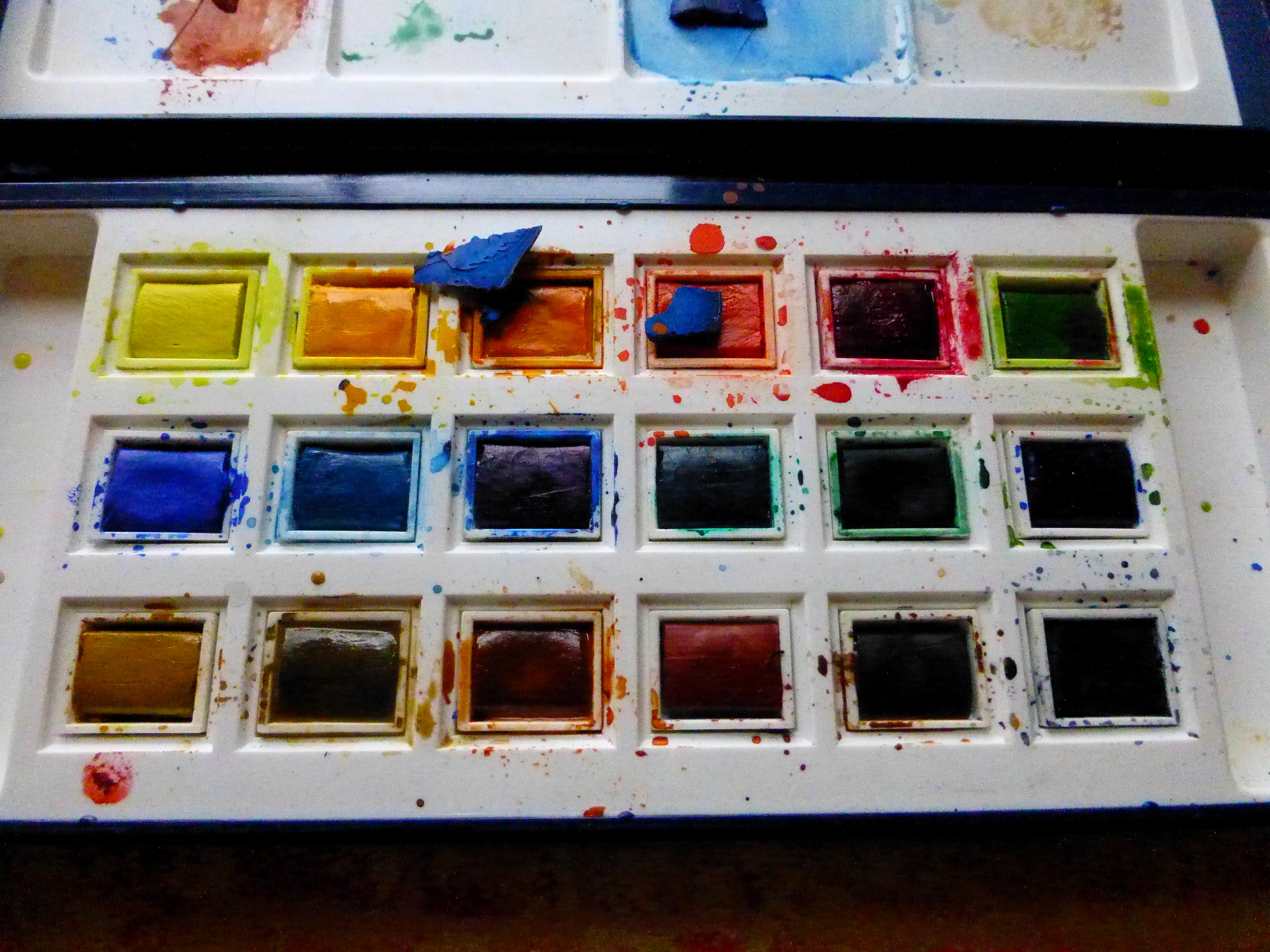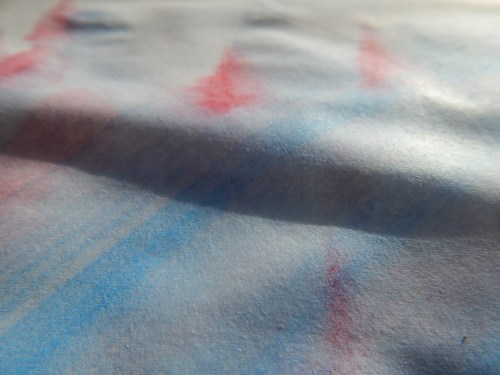Watercolor on wood. You can’t get much more ephemeral so who knows I may use these same thin pieces again one day. But this fan can stay as it is for a bit because a certain someone is beginning to work on a new table. A much smaller table. We’ll see what falls by the wayside this time for our next collaboration. Be well,everyone. 🙂