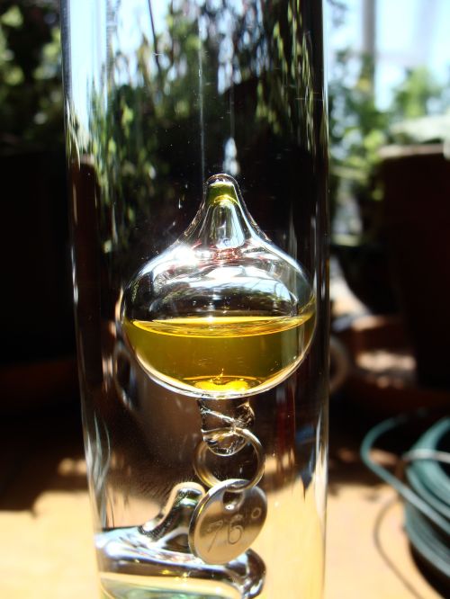A Galileo thermometer. Read more here. A gift from family. He tried to replace it on top of the shelf, but the morning sunlight hit it and that was that. I gently took it from his hand. At his quizzical look, I said, “I’ll be careful. Promise.”