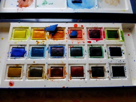 Somehow it seems more right (excuse the bad grammar) to try to capture what I see with other tools besides my camera. I may feel differently over the course of the day as the light changes with the approaching storm, and the action outside my window is such that I want to capture as much as fast as I can with pixels instead of calming watercolors.
