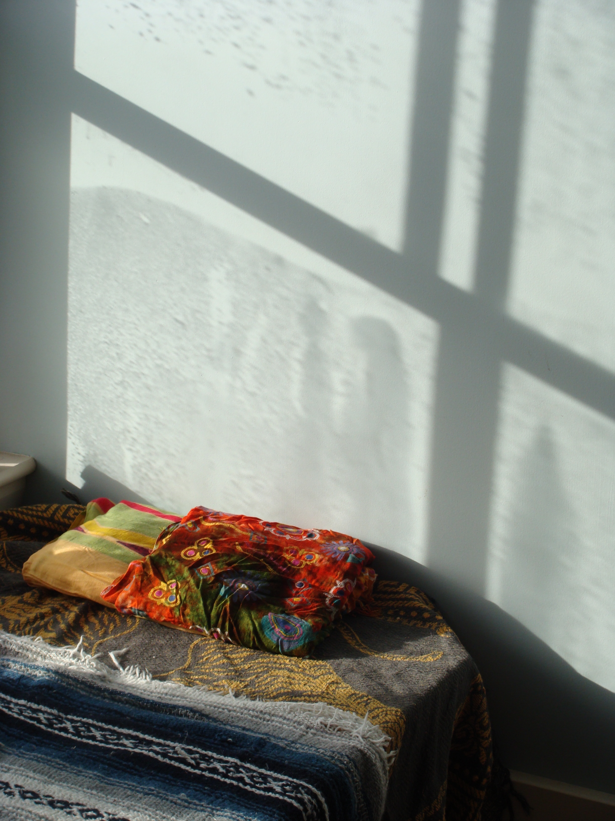 The sun was setting producing that wonderful bright low light that spills into the living room through my rippled window. I sat across the room peering through that window. I happened to have my camera set to black and white. As I contemplated whether or not there was something to photograph as the light faded away, I noticed how that light outlined and framed the nearby floor lamp. That is the origin of this picture.